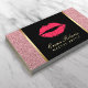 Makeup Artist Modern Ro Guld Glitter Red Läppar Affärskort.