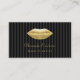 Affärskortet i elegant för konstnären i professionellen har ett par glamorösa faux guld läppar mot en svart lodrät som har strimlad mönster bakgrund. Anpassa genom att lägga till namn, titel och kontaktinformation. Perfekt för auktoriserad kosmetolog eller kosmetologen fält.