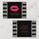 Makeup Artist Mode Stylist Red Läppar Modern Silver Sequin Rand Affärskort.