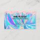 Ett årligt rosa med pulver simulerade glitter droppar smälter uppifrån på både baksidan och framsidan, och en metallfaux foil Iridescent Opal-regnbåge i struktur angav tonen för detta anpassade-visitkort, som innehåller en grund gräns av mousserande rosa ros guld glitter ansikte skönhetsprodukter på.