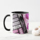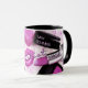 Makeup artist mugg med rosa lipstick, öga skuggpaletter och nagel polerar över glansig rosa-vit bakgrund täckt med glitter. Denna snyggt kaffe mugg är perfekt för skönhetare, kosmetologer, hår och sminksalonger och andra liknande yrken. Kontakta mig gärna om du behöver hjälp med den här designen.