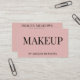 Ett typografiskt affärskort för snyggt för en makeup-artist eller MUA. På kortets framsida finns "Makeup" i ord i en elegant, ett modernt typsnitt. Den här designen är i en dammig rosa färglös. Textmallarna är helt och hållet anpassade till kostym för ditt företags varumärke och marknadsföring.