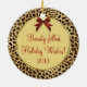 En underbar, unik digital konst som sätter upp julens Helgdag på prydnad! Den här runda dubblan har en fin digital bild av en jul eller Helgdag med läppstift och två sminkade penslar på framsidan. Det är inramat med trendig cheetah-djurtryckskonst gräns med gyllene digitala konstbeslag, utfällda med ett rött och guld-båge! På baksidan av dekorationen står "Beauty fylld Helgdag Önskemål" i ett festive Red script font. Lägg till året för den sista pekfingret! Det är ett vackert smink tema för prydnad för någon som kärlek sminkar! Underbar från eller för en konstgjord konstnär! Besök vår affär om du vill ha mer helgdagskort och gåvor på temat!