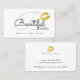 Enkelheten i ett elegant, delikat och feminininvitt monogrammat kontaktkort med faux guld läppar och med fält för namn och början (skript Sacramento font-stil), yrke, affärsverksamhet-namn och ytterligare information (adress, mobilt nummer och e-post).. som är perfekt för skönhetsalonger, makeup artists, cosmetology förråd ...