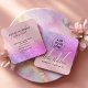 An elegant modern double letters monogram square business card , stylish makeup artist business card with elegant modern simple hand lettering style typography on a faux pink purple glitter and pastel blush pink trendy and elegant background. all text is customizable, add your social media. add your logo.