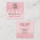 Ett elegant modernt fyrkantigt affärskort i dubbla brev, affärskort med snyggt med modernt, enkelt handskriftsformat stil typografi i vitt på ett faux elegant rosa och glitter och rosa trendig. All text är elegant, lägg till dina anpassaden. lägg till social.