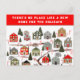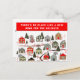 Julhälsningskortdesign med julbyhus och mäklarens fastighetsmäklare marknadsföringslinje. Anpassa genom att redigera texten.