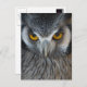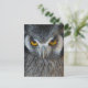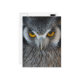 Vykort med makro-/stäng foto av svartvit ugglor ansikte.