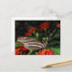 Ett vykort skapat med ett makrofoto av en Zebra Longwing-fjäril som vilar på en blomnod.