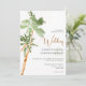 Den här eleganten är en inbjudan till ett bröllop mellan tropisk strand. Den innehåller grönt och koppar handflatan träd mot en vit bakgrund med ett grönt ampersand- och kopparkalligrafiskript. Kortets baksida har en grönt. Det här är en vacker inbjudan till ett badbröllop på Hawaii i Florida, eller till något annat exotiskt destinationsbröllop. Kortet är enkelt att anpassa med din egen bröllop-information.