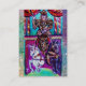 Major Arcana Chariot.Mysterious allegorious contemporary tavla .Watercolor-tavla med guld foil av Bulgan Lumini.c) Magic guld sparkles in bright teal,blue grönt ,gult färg.Blandat mediematerial med golden och silver folie.