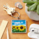 Måla för solrosor fyrkantig silverfärgad nyckelring