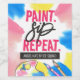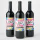 Ge din brudgrupp en liten souvenir för din måla och drick champagne fest med en personlig etikett på vinflaskan. Anpassa helt enkelt med brudens namn för en rolig personlig touch. Designen har typografin "måla drick upprepa" samt färgsprut med gula, röda och blåa färgsprut samt en handmålad palett, målarpensel och glas.