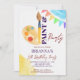 Färgteckning och party-teckning: redigerbar mall direktuppladdning, färgfull pensel- och vattenfärgsfärgpalettinbjudan för konsmålning party