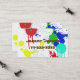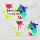 Splats och splatters av olika färger av målar dekorerar denna barns telefonkort. Text är anpassadet till något att säga något som du önskar. Underbar för lite konstnärerna i familjen, också utmärkt som en målarevisitkort. Tillfoga mer textfält på bekläda och dra tillbaka av detta underbara kort.