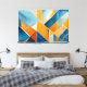 Ett målat abstrakt konstverk i nyanser av blått och orange