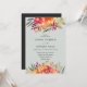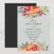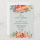 Den eleganta och rustika designen har en krans av vackra målade akrylblommor i rosafärgad orange och gul, med inslag av färgglada lila och gröna blad och lövverk.