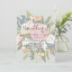 Den här målade blommigtens bröllopsinbjudan är perfekt för ett modernt bröllop. Eleganten och den romantiska designen har vackra målade akryliska blommor i rosa och vitt, med krukor av färglös lila, blått, orange och gult, övertäckta med texten.