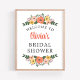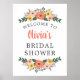 Välkommen gäster till bröllopsduschen med denna glada display med frodiga målade buketter av korall, rosafärgade och gyllengula blommor med djupgrönska och bärinslag som ramar in toppen och botten. Brudens namn visas i fet korallskrift mot en ren vit bakgrund, vilket skapar en fräsch, trädgårdsinspirerad mittpunkt för alla bröllopsfiranden. All text är helt anpassningsbar.