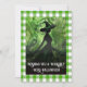 Det här Halloween-kortet har en grönt och en svart målning av en häxa i en förändrad skog. Designad för dem som kärlek mörk drömmer om och skämmer om sak.