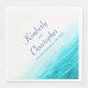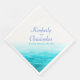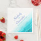 Vackra blåmålade hav med grafiska vågor glittrar över bröllopsservetter i akvatisk turkos, blå och vit. Ett bra personligt tillägg till dina bröllopsbord. Personliggör med dina namn och bröllopsdatum. En vacker strand, kust- eller havsinspirerad, modern, bröllopsservett med ett unikt stiliserat, handmålat hav, på vit bakgrund. Perfekt för ett modernt strand-, havs- eller sjöfartsbröllop. Unikt designad och målad av Sarah Trett www.mylittleedenweddings.com