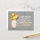 Fint, beundransvärt målat Mason burk med gula blommor sparar vykortet för datum. Bara söt och roligt målad mason burk gult grått eller stilla gult bröllop - vintage ändå sparar burk datumkort.