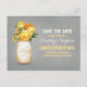 Målad mynning burk & gula blommor sparar datumet meddelande vykort
