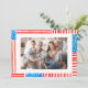 Inbjudan dina vänner och familj för att fira Amerikas självständighet med vårt fantastiska 4:e juli-fotokort. Att omge anpassningsbarna är en vacker vattenfärg som målas amerikanska gräns, som tillför ett litet patriotiskt fläkt till designen. Resultatet är ett kort som både är snyggt och firande, perfekt fångar andan från den 4 juli.