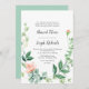 målad persikofärgad blommigt greenery bröllop inbjudningar
