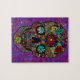 Den målade skallen målade med blommor och andra färgrika designer. Startat som traditionell konst och avslutat och givet en faux metallisk struktur, och måla splotchbakgrund, genom att använda Adobe Photoshop CS2.