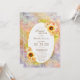 En elegant rustik bröllopsbrunch-inbjudan med målade solrosor och tusenskönor på en abstrakt bakgrund som flyter med varma pastellfärger.