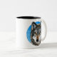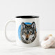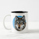 En akrylmålning av en grå varg över en blåttbakgrund.