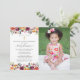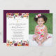Den här elegantens första födelsedagsinbjudan innehåller söt blommigtar och ett foto av födelsedagsflickan eller pojken. På den lämnat sidan av inbjudan målas höstblommor upp och grund på färgaden. Blommigt gräns ramar står i inbjudan och guld kor. Ditt favoritfoto visas på högerna av inbjudan. Anpassa enkelt dina firande-detaljer och foton. Den vita bakgrunden på framsidan och baksidan av sangria-lila kan redigeras på valfri färg.