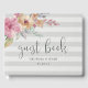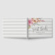 Inbjudan dina gäster från bröllop till önskemål och visdom med den här chicen grått-strimlade gästen bok med blek-färg som är förskönad med blommor av rosa och persikofärgad vattenfärg. Randig design innehåller "gäst bok" i handskrivet kalligrafskript, med namn och bröllop-datum under. En bukett med rosa och grönt vattenfärgsblommor som blommar från hörnet avslutar utseendet. Anpassa även grått-ryggraden genom att välja anpassningsbar.