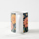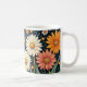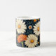 Stora, vackra målade daisy i rosenröd rosa, tegelrött och elfenbensvitt mot mörkens bakgrund med små gula och vita blommor gör ett charmerande mugg. Perfekt för alla som kärlek natur och blommor.