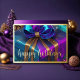 Målade julklappar lila, turkos, blå och guld helgkort
