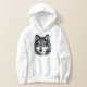 En svartvit version av en akrylmålning av en grå färgvarg med blått synar.