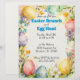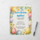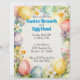 Dekorerade ägg i pastellfärger kombineras med vårblommor för att skapa en vacker inbjudan till påskbrunch med påskäggsjakt. Mycket vacker och vår-liknande.