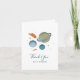 Solsystem och rumstempererad inbjudan till babydusch med en gräns av handmålade planeter av Shelby Allison mot en vit bakgrund.
