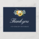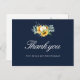 Det här kortet har akvarellmålade solrosor med eucalyptusgrönska och en elegant blå färg. Texten och färgerna kan anpassas.