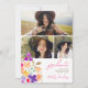Gratulera till studenten i stil med vårt aviseringskort från Blommigt Studenten, med vår pulserande blommigt! I det här meddelandet visas tre foton som fångar dina speciella ögonblick i den delikata, handmålade vildblomman i vattenfärger i ljusa nyanser av rosa, rött, blått, gult och grönt. Med elegant-penselskriptteckensnitt och modern typografi tillför det en aning bohemisk elegans till ditt meddelande. Låt oss glädje över din bedrift med nära och kära!