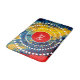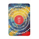 Denna bathmat presenterar en gult som är röd, och blåttfärgaden målar splatterdesign med en ordna av genomskinliga fyra cirklar med vit prack gränser som utstrålar ut från en röd central, cirklar. I centrera av det rött cirkla där är ett fält för anpassadevittext för att dig ska personifiera denna badmatta med din egna monogram eller initialer.
