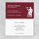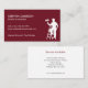 Ett visitkort för måleri- och dekorationsbranschen. Med en vinröd bakgrund på framsidan och en siluett av en målare på trappor som håller en målarrulle, kan du enkelt anpassa den vita typografin med ditt namn och kontaktinformation. Baksidan av kortet har en enkel vit bakgrund och du kan lista de tjänster du erbjuder.