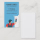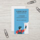 En illustration av en målare i röd överdel och blå overall som målar blått på väggen med en rullborste. Perfekt för dem som tillhandahåller målningsservice! Anpassa enkelt med dina företagsuppgifter i de medföljande textmallarna. Affärskort i vertikal justering. Horisontell justering finns också tillgänglig.