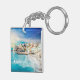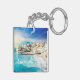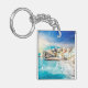 Dubbla-sidig nyckelkedja för världsresande med den vackra scenmålningen av kusten/havsbottenfisket och turistbyn Camogli, Italien
