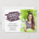 Denna inbjudan till grad-fest har en enkel design och är accentuerad med mörklila penseldrag. Anpassa denna inbjudan till fotograd-fest med ditt favoritfoto av den färdiga studenten.