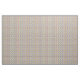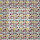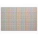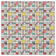 Denna väv har en modern utformning i mitten av århundradet av ett rutnät av svart linjer med kvadrater och rektanglar i färg på en vit fält.