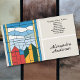 Affärskort med handritad illustration av ett fönster av nedfläckad-glas med blå himmel, vita moln, rött, grönt och gult byggnad: perfekt för konstnärer av nedfläckad, men även inredingsdesign, florist, konstnärer, bröllopsfixaren osv.