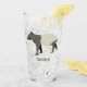 This drinking glass features my realistic style illustration of a Malayan or Asian Tapir in charcoal gray and cream. Below the graphic is a spot to add a name or other custom text in gray lettering. The illustration and name appear on both sides of this glass.
