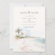 Tropical Island Beach Watercolor Scene, Photo Save the Date.